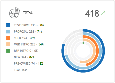 A quick view of how many customers have been greeted in-person today by opportunity type; including walk-ins, appointments, be-backs and even off-site appointments